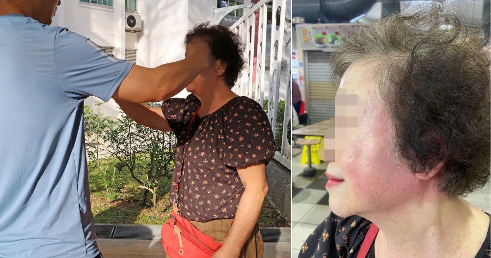 S'pore woman, 75, allegedly assaulted & spat on by man at Mayflower Market & Food Centre after asking him to give way The elderly woman's family hopes witnesses of the incident can come forward. An elderly woman, 75, was assaulted by a male stranger after she asked him to give way. The incident happened at Mayflower Market and Food Centre on Oct. 11 at around 9am. By speaking to the media, Yong Mou Chung's family hopes witnesses can come forward to assist in police investigations. What happened According to Yong's family, Yong placed her grocery trolley next to a table in front of a fishball stall. After buying coffee, she returned to the table to collect her trolley, only to find a woman sitting there with a stroller next to it. The alleged assailant was standing there too. Yong politely asked them to give way, but the man got angry and scolded her, asking if she was blind. Yong said that the man used Hokkien vulgarities at her and even spat in her face twice. Yong asked why he had to be so rude and wanted an apology from him. At this point, the woman was already pulling the man away, Yong recounted. However, she said the man not only did not apologise but also kicked and pushed her. Yong tried to shield herself with her hand, and in doing so, she spilt her coffee on him. Enraged, the man punched Yong's face, and the impact caused her to fall to the ground.